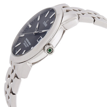 Silver-tone stainless steel case and bracelet. Fixed silver-tone stainless steel bezel. Anthracite dial with silver-tone hands and index hour markers. Minute markers around the outer rim. Dial Type: Analog. Date display at the 3 o'clock position. Automatic movement. Scratch resistant sapphire crystal. Pull / push crown. Transparent see through case back. Round case shape, case size: 41 mm. Butterfly clasp. Water resistant at 100 meters / 330 feet. Functions: date, hour, minute, second. Master Series Series. Casual watch style. Watch label: Swiss Made. Titoni Master Series Automatic Anthracite Dial Men's Watch 83188-S-576.