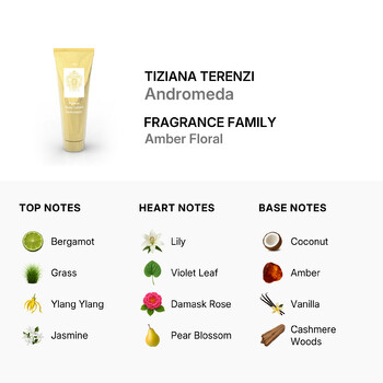 Discover a luxurious scent experience with Tiziana Terenzi Andromeda Body Lotion, a unisex fragrance from the heart of Italy. Launched in 2015 by the renowned niche fragrance house Tiziana Terenzi, Andromeda captures the magic of a distant galaxy with every application. This 1.7 oz body lotion not only hydrates and pampers your skin but also leaves a lasting impression through its captivating scent profile.