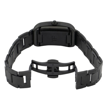 Black stainless steel case and bracelet. Fixed stainless steel bezel. Black dial with silver-tone hands and Arabic numeral hour markers. Minute markers around the outer rim. Dial Type: Analog. Quartz movement. Scratch resistant sapphire crystal. Solid case back. Rectangle case shape, case size: 27 mm x 40 mm, case thickness: 8.25 mm. Band width: 19 mm. Fold over clasp with a safety release. Water resistant at 30 meters / 100 feet. Functions: hour, minute. 001 Series. Casual watch style. Watch label: Swiss Made. Tom Ford 001 Quartz Black Dial Unisex Watch TF0120140885 STE.