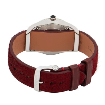 Silver-tone stainless steel case with a red leather strap. Fixed silver-tone stainless steel bezel. White dial with blue hands and Arabic numeral hour markers. Minute markers around the outer rim. Dial Type: Analog. Quartz movement. Scratch resistant sapphire crystal. Solid case back. Round case shape, case size: 34 mm, case thickness: 9 mm. Band width: 19 mm. Buckle clasp. Water resistant at 30 meters / 100 feet. Functions: hour, minute. 002 Series. Casual watch style. Watch label: Swiss Made. Tom Ford 002 Quartz White Dial Ladies Watch TF0120146437 RED.