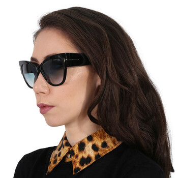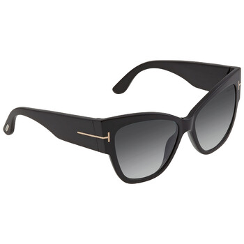 Tom Ford Sunglasses. Series Anoushka. Series number: FT0371. Color code: 01B. Shape: Cat Eye. Lens Width: 57 mm. Lens Bridge: 16 mm. Arm Length: 140 mm. 100% UV protection. Frame Material: Acetate. Frame Color: Black. Lenses Type: Grey Gradient. Rim Style: Full-Rim. UPC/EAN code: 664689646326. Tom Ford Anoushka Grey Gradient Cat Eye Ladies Sunglasses FT0371 01B 57.