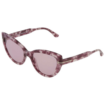 Tom Ford Sunglasses. Series Anya. Series number: FT0762. Color code: 56Y. Shape: Cat Eye. Lens Width: 55 mm. Lens Bridge: 20 mm. Arm Length: 140 mm. 100% UV protection. Frame Material: Plastic. Frame Color: Violet Havana. Lenses Type: Violet. Rim Style: Full-Rim. UPC/EAN code: 889214096371. Tom Ford Anya Violet Cat Eye Ladies Sunglasses FT0762 56Y 55.