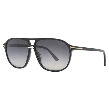 Tom Ford Sunglasses. Series Bruce. Series number: FT1026. Color code: 01B. Shape: Navigator. Lens Width: 61 mm. Lens Bridge: 12 mm. Arm Length: 145 mm. 100% UV protection. Non-Polarized. Frame Material: Acetate. Frame Color: Shiny Black. Lenses Type: Smoke Gradient. Rim Style: Full-Rim. UPC/EAN code: 889214403384. Tom Ford Bruce Smoke Gradient Navigator Men's Sunglasses FT1026 01B 61.