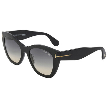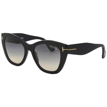 Tom Ford Sunglasses. Series Cara. Series number: FT0940. Color code: 01B. Shape: Cat Eye. Lens Width: 56 mm. Lens Bridge: 20 mm. Arm Length: 140 mm. 100% UV protection. Frame Material: Acetate. Frame Color: Shiny Black. Lenses Type: Smoke Gradient. Rim Style: Full-Rim. UPC/EAN code: 889214318473. Tom Ford Cara Smoke Gradient Cat Eye Ladies Sunglasses FT0940 01B 56.