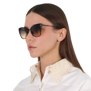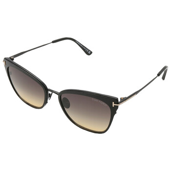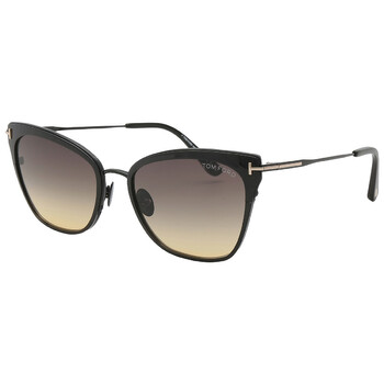 Tom Ford Sunglasses. Series Faryn. Series number: FT0843. Color code: 01B. Color: Multi-Color. Shape: Cat Eye. Lens Width: 56 mm. Lens Bridge: 19 mm. Arm Length: 140 mm. 100% UV protection. Frame Material: Titanium. Frame Color: Shiny Black. Lenses Type: Smoke To Yellow Gradient. Rim Style: Full-Rim. UPC/EAN code: 889214219268. Tom Ford Faryn Smoke To Yellow Gradient Cat Eye Ladies Titanium Sunglasses FT0843 01B 56.