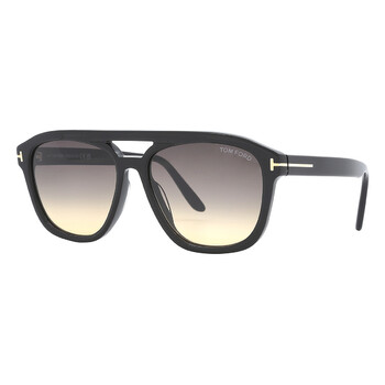 Tom Ford Sunglasses. Series Gerrard. Series number: FT0776. Color code: 01B. Shape: Pilot. Lens Width: 56 mm. Lens Bridge: 16 mm. Arm Length: 145 mm. 100% UV protection. Non-Polarized. Frame Material: Acetate. Frame Color: Shiny Black. Lenses Type: Gradient Smoke. Rim Style: Full-Rim. UPC/EAN code: 889214120953. Tom Ford Gerrard Gradient Smoke Pilot Men's Sunglasses FT0776 01B 56.