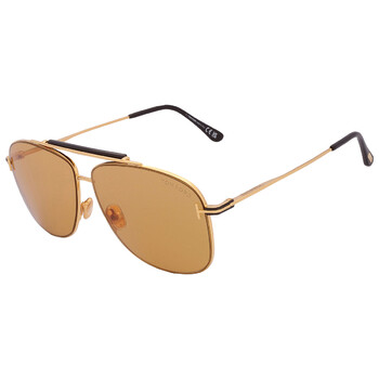 Tom Ford Sunglasses. Series Jaden. Series number: FT1017. Color code: 30E. Shape: Navigator. Lens Width: 60 mm. Lens Bridge: 12 mm. Arm Length: 145 mm. 100% UV protection. Non-Polarized. Frame Material: Metal. Frame Color: Shiny Deep Gold. Lenses Type: Brown. Rim Style: Full-Rim. UPC/EAN code: 889214403117. Tom Ford Jaden Brown Navigator Men's Sunglasses FT1017 30E 60.