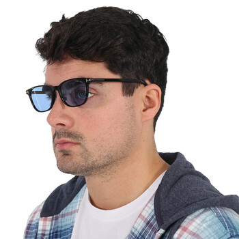 Tom Ford Sunglasses. Series number: FT1040-D. Color code: 01V. Shape: Square. Lens Width: 52 mm. Lens Bridge: 18 mm. Arm Length: 140 mm. 100% UV protection. Non-Polarized. Frame Material: Acetate. Frame Color: Shiny Black. Lenses Type: Light Blue. Rim Style: Full-Rim. UPC/EAN code: 889214394798. Tom Ford Light Blue Square Men's Sunglasses FT1040-D 01V 52.