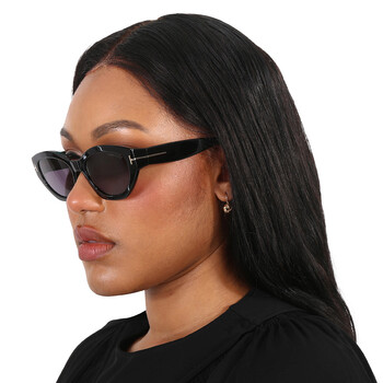 Tom Ford Sunglasses. Series Penny. Series number: FT1086. Color code: 01A. Shape: Cat Eye. Lens Width: 55 mm. Lens Bridge: 19 mm. Arm Length: 135 mm. 100% UV protection. Non-Polarized. Frame Material: Acetate. Frame Color: Shiny Black. Lenses Type: Smoke. Rim Style: Full-Rim. UPC/EAN code: 889214469380. Tom Ford Penny Smoke Cat Eye Ladies Sunglasses FT1086 01A 55.