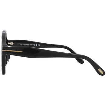 Tom Ford Sunglasses. Series Romy. Series number: FT1032-F. Color code: 01A. Shape: Hexagonal. Lens Width: 56 mm. Lens Bridge: 19 mm. Arm Length: 140 mm. 100% UV protection. Non-Polarized. Frame Material: Plastic. Frame Color: Shiny Black. Lenses Type: Smoke. Rim Style: Full-Rim. UPC/EAN code: 889214403599. Tom Ford Romy Smoke Hexagonal Ladies Sunglasses FT1032-F 01A 56.