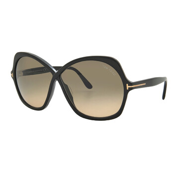 Tom Ford Sunglasses. Series Rosemin. Series number: FT1013. Color code: 01B. Shape: Butterfly. Lens Width: 64 mm. Lens Bridge: 7 mm. Arm Length: 135 mm. 100% UV protection. Non-Polarized. Frame Material: Plastic. Frame Color: Shiny Black. Lenses Type: Smoke Gradient. Rim Style: Full-Rim. UPC/EAN code: 889214385376. Tom Ford Rosemin Smoke Gradient Butterfly Ladies Sunglasses FT1013 01B 64.