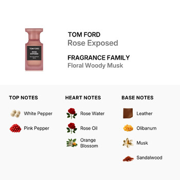 As part of Tom Ford's exclusive fragrance collection, Rose Exposed reflects the brand’s commitment to style, quality, and innovation. Its carefully curated notes create a scent that is both modern and timeless—perfect for those who appreciate refined elegance with a daring twist.