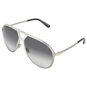 Tom Ford Sunglasses. Series Xavier. Series number: FT1060. Color code: 16B. Shape: Pilot. Lens Width: 64 mm. Lens Bridge: 14 mm. Arm Length: 135 mm. 100% UV protection. Non-Polarized. Frame Material: Metal. Frame Color: Shiny Palladium. Lenses Type: Smoke Gradient. Rim Style: Full-Rim. UPC/EAN code: 889214454911. Tom Ford Xavier Smoke Gradient Pilot Men's Sunglasses FT1060 16B 64.