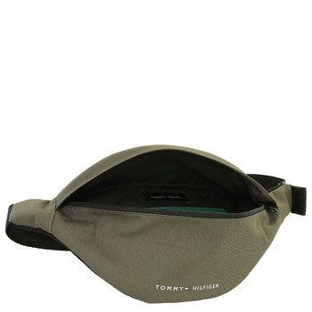 Tommy Hilfiger Men's Belt Bag. SKU: AM0AM12971RBN. Barcode: 8720637868485. Color: Green. Tommy Hilfiger Element Bumbag. This polyester belt bag features a concealed zip closure, one main compartment, an interior zipped pocket, and a repeat logo adjustable waist belt. It is finished with the Tommy Hilfiger logo print on the front and Tommy Hilfiger branding. 100% polyester.