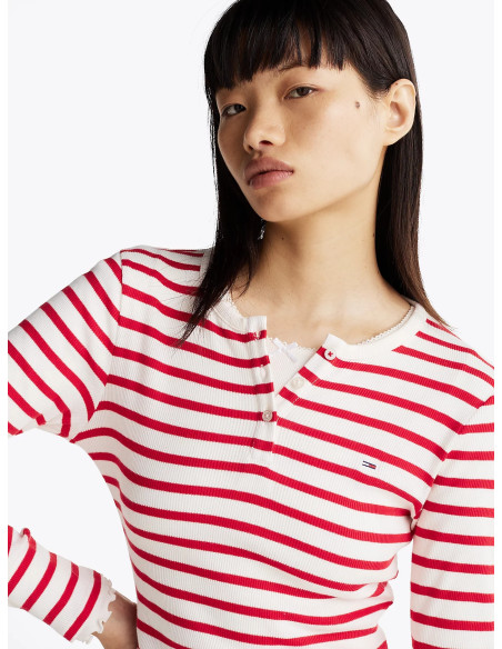 მაისურები Tommy Jeans - TJW SLM BUTTON RIB C-NECK LS EXT