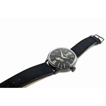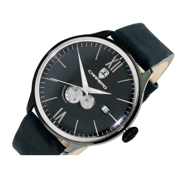 TORINO CARRERO MEN'S WATCH, NH35 (24-JEWELS AUTOMATIC) WITH EXHIBITION BACK, OPEN HEART BEAT CURVE BLACK DIAL, STAINLESS STEEL CASE IP-BLACK TONE, BLACK GENUINE LEATHER BAND Black stainless steel case with a black genuine leather strap. Fixed black stainless steel bezel. Black dial with silver-tone hands and Roman numeral & index hour markers. Minute markers around the outer rim. Dial Type: Analog. Luminescent hands. Date display at the 3 o'clock position. NH35 24-JEWELS AUTOMATIC automatic movement. Scratch resistant mineral crystal. Pull / push crown. Transparent case back. Round case shape, case size: 45 mm, case thickness: 15.25 mm. Band width: 22 mm, band length: 7.5 inches. Buckle clasp. Water resistant at 100 meters / 330 feet. Functions: date, hour, minute, second. Additional Info: open heart. Aerodrome Series. Dress watch style. Watch label: Japan Made Movement. Torino Carrero Aerodrome Automatic Black Dial Men's Watch C1B1780-BKJ.