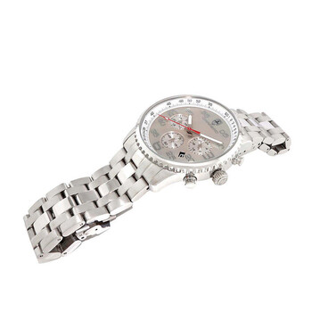 Silver-tone stainless steel case and bracelet. Fixed silver-tone stainless steel bezel. Brown dial with silver-tone hands and Arabic numeral & index hour markers. Minute markers around the outer rim. Dial Type: Analog. Luminescent hands. Date display between 4 and 5 o'clock position. Chronograph - sub-dials displaying: 24 hour. Epson VR32 quartz movement. Scratch resistant mineral crystal. Pull / push crown. Solid case back. Round case shape, case size: 46 mm, case thickness: 12.75 mm. Band width: 24 mm, band length: 7.25 inches. Fold over with double push button release clasp. Water resistant at 100 meters / 330 feet. Functions: chronograph, date, hour, minute, second. Additional Info: mother of pearl dial. Aureum-mb Series. Casual watch style. Watch label: Chronograph, Japan Mov't. Torino Carrero Aureum-Mb Chronograph Tachymeter Brown Dial Men's Watch C1S7022-BN.