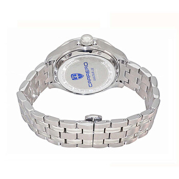 Torino Carrero Men's Avatar Automatic NH35 - 24 JEWELS, Green Date Dial, Silver tone. Silver-tone stainless steel case and bracelet. Uni-directional rotating blue stainless steel bezel. Grey dial with silver-tone hands and Arabic numeral & index hour markers. Minute markers around the outer rim. Dial Type: Analog. Luminescent hands and markers. Date display at the 3 o'clock position. TMI Caliber NH35 Automatic movement, containing 24 Jewels, bitting at 21600 vph, and has a power reserve of approximately 41 hours. Scratch resistant mineral crystal. Screw down crown. Solid case back. Round case shape, case size: 44.5 mm, case thickness: 15 mm. Band width: 22 mm, band length: 7.25 inches. Deployment with push button release clasp. Water resistant at 100 meters / 330 feet. Functions: date, hour, minute, second. Avatar Series. Casual watch style. Watch label: Japan Movt. Torino Carrero Avatar Automatic Grey Dial Men's Watch C1S6161GRJ.