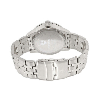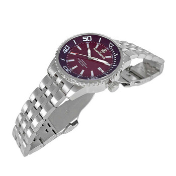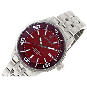 Torino Carrero Men's GrandMaster Automatic NH35 - 21 JEWELS, Brown Date Dial, Silver tone. Silver-tone stainless steel case and bracelet. Fixed red stainless steel bezel. Brown dial with silver-tone hands and Arabic numeral & index hour markers. Minute markers around the outer rim. Dial Type: Analog. Luminescent hands and markers. Date display at the 3 o'clock position. TMI Caliber NH35 Automatic movement, containing 24 Jewels, bitting at 21600 vph, and has a power reserve of approximately 41 hours. Scratch resistant mineral crystal. Screw down crown. Solid case back. Round case shape, case size: 44 mm, case thickness: 13 mm. Band width: 22 mm, band length: 8.5 inches. Deployment with push button release clasp. Water resistant at 100 meters / 330 feet. Functions: date, hour, minute, second. Grandmaster Series. Casual watch style. Watch label: Japan Movt. Torino Carrero GrandMaster Automatic Brown Dial Men's Watch C1S4345BNJ.