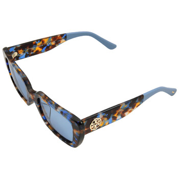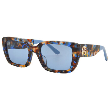 Tory Burch Sunglasses. Series number: TY7190U. Color code: 190580. Shape: Rectangular. Lens Width: 51 mm. Lens Bridge: 21 mm. Arm Length: 140 mm. 100% UV protection. Non-Polarized. Frame Material: Plastic. Frame Color: Blue Tortoise. Lenses Type: Blue. Rim Style: Full-Rim. UPC/EAN code: 725125398367. Tory Burch Blue Rectangular Ladies Sunglasses TY7190U 190580 51.