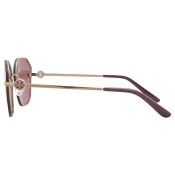 Tory Burch Sunglasses. Series number: TY6081. Color code: 329769. Shape: Irregular. Lens Width: 57 mm. Lens Bridge: 15 mm. Arm Length: 140 mm. 100% UV protection. Non-Polarized. Frame Material: Metal. Frame Color: Shiny Gold. Lenses Type: Bordeaux. Rim Style: Full-Rim. UPC/EAN code: 725125369718. Tory Burch Bordeaux Irregular Ladies Sunglasses TY6081 329769 57.