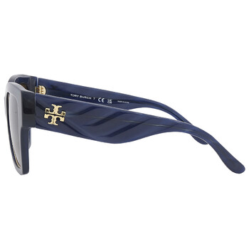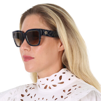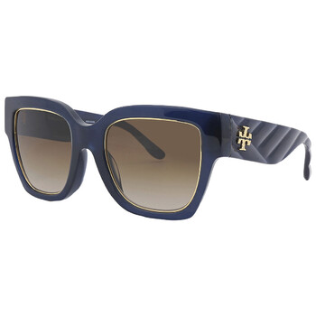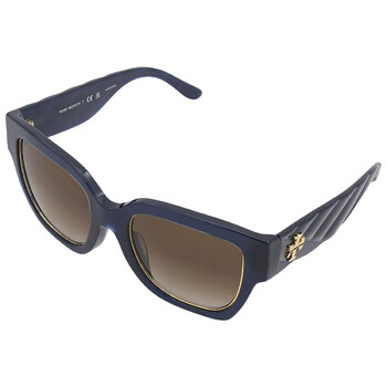 Tory Burch Sunglasses. Series number: TY7180U. Color code: 165613. Shape: Square. Lens Width: 52 mm. Lens Bridge: 20 mm. Arm Length: 140 mm. 100% UV protection. Frame Material: Plastic. Frame Color: Transparent Navy. Lenses Type: Brown Gradient. Rim Style: Full-Rim. UPC/EAN code: 725125391573. Tory Burch Brown Gradient Square Ladies Sunglasses TY7180U 165613 52.
