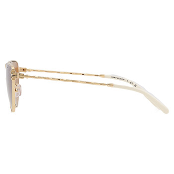 Tory Burch Sunglasses. Series number: TY6110. Color code: 33437N. Shape: Cat Eye. Lens Width: 56 mm. Lens Bridge: 16 mm. Arm Length: 140 mm. 100% UV protection. Non-Polarized. Frame Material: Metal. Frame Color: Gold. Lenses Type: Brown Mirror. Rim Style: Full-Rim. UPC/EAN code: 725125519038. Tory Burch Brown Mirror Cat Eye Ladies Sunglasses TY6110 33437N 56.