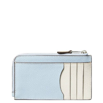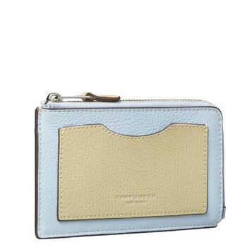 Tory Burch Ladies Card Case. SKU: 152911-400. Color: Blue. Size: H: 3.2"x L: 5.5". Tory Burch Color-Block Leather Card Case. This card case features a zipper closure, one exterior front card pocket, five exterior back wall pockets, and one zipper pocket. Material: Pebbled leather; calf leather trim.
