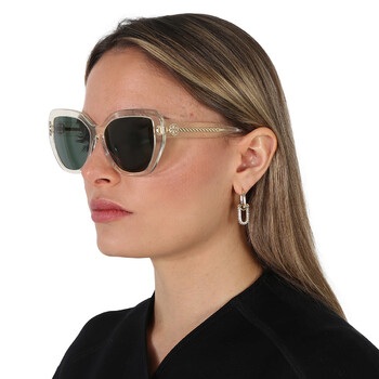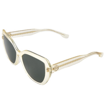 Tory Burch Sunglasses. Series number: TY7194F. Color code: 19523H. Shape: Cat Eye. Lens Width: 57 mm. Lens Bridge: 17 mm. Arm Length: 145 mm. 100% UV protection. Frame Material: Acetate. Frame Color: Transparent Pinot. Lenses Type: Dark Green. Rim Style: Full-Rim. UPC/EAN code: 725125449632. Tory Burch Dark Green Cat Eye Ladies Sunglasses TY7194F 19523H 57.