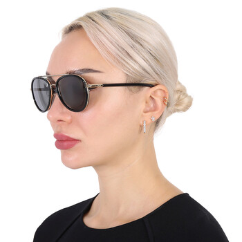 Tory Burch Sunglasses. Series number: TY6089. Color code: 33056V. Shape: Pilot. Lens Width: 57 mm. Lens Bridge: 17 mm. Arm Length: 140 mm. 100% UV protection. Non-Polarized. Frame Material: Plastic;Metal. Frame Color: Black/Gold. Lenses Type: Dark Grey Flash Mirrored. Rim Style: Full-Rim. UPC/EAN code: 725125381130. Tory Burch Dark Grey Flash Mirrored Pilot Ladies Sunglasses TY6089 33056V 57.