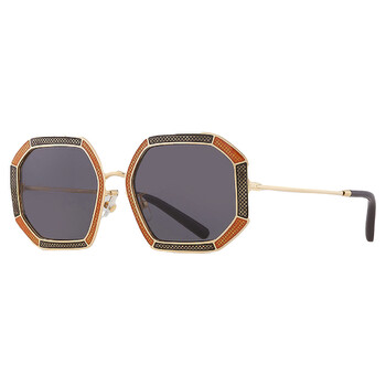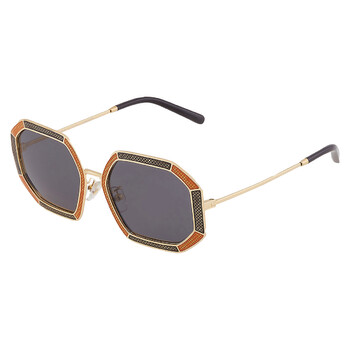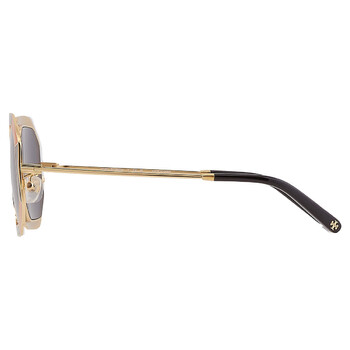 Tory Burch Sunglasses. Color code: 335387. Shape: Geometric. Lens Width: 52 mm. Lens Bridge: 18 mm. Arm Length: 140 mm. 100% UV protection. Non-Polarized. Frame Material: Metal. Frame Color: Gold/Dark Grey. Lenses Type: Dark Grey. Rim Style: Full-Rim. UPC/EAN code: 725125398671. Tory Burch Dark Grey Geometric Ladies Sunglasses TY6102 335387 52.