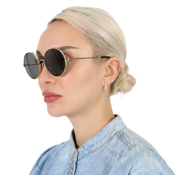Tory Burch Sunglasses. Series number: TY6096. Color code: 332787. Shape: Round. Lens Width: 54 mm. Lens Bridge: 19 mm. Arm Length: 140 mm. 100% UV protection. Non-Polarized. Frame Material: Metal. Frame Color: Gold. Lenses Type: Dark Grey. Rim Style: Full-Rim. UPC/EAN code: 725125398466. Tory Burch Dark Grey Round Ladies Sunglasses TY6096 332787 54.