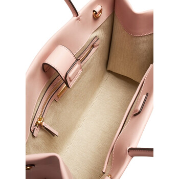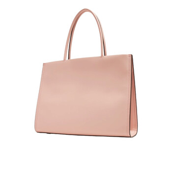 Tory Burch Ladies Tote. SKU: 145612-654. Color: Blush. Size: H: 10.4" x L: 13.4" x D: 4.3". Tory Burch Ella Small Bio Tote Bag In Blush. The Ella tote features a cotton herringbone lining, a bridge with a magnetic snap closure and snaps on the gussets, top handles with a 7.3-inch drop, an adjustable and removable crossbody strap with a 20.5-inch drop, and includes one hidden exterior pocket on the logo patch, one interior front slit pocket, and one interior back zipper pocket. Fits a laptop up to 13". Outer: 68% polyurethane, 32% viscose. Coating : 100% Polyurethane (PU); Lining : 100% Cotton.