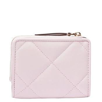 Tory Burch Ladies Wallets. SKU: 154990-651. Color: Rose Salt. Size: H: 3.5" × L: 4.7". Tory Burch Kira Diamond Quilt Leather Wallet. This wallet is made of calf leather with diamond quilting, featuring a press-stud fastening, a signature Double T plaque on the front, and a rear zip-fastening pocket. Inside, it has a note compartment, six card slots, and an internal logo stamp, all designed in a bi-fold style. Material: Nappa Leather 100%.