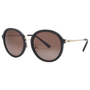 Tory Burch Sunglasses. Series number: TY9058. Color code: 1791T5. Shape: Round. Lens Width: 55 mm. Lens Bridge: 19 mm. Arm Length: 145 mm. 100% UV protection. Polarized. Frame Material: Plastic. Frame Color: Black. Lenses Type: Polarized Brown Gradient. Rim Style: Full-Rim. UPC/EAN code: 725125084345. Tory Burch Polarized Brown Gradient Round Ladies Sunglasses TY9058 1791T5 55.