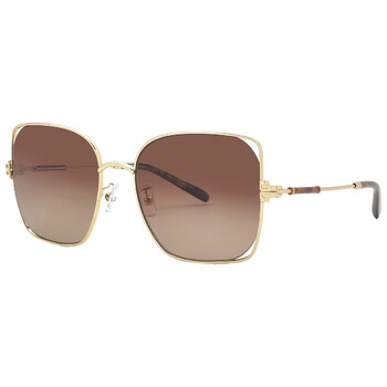 Tory Burch Sunglasses. Series number: TY6097. Color code: 3316T5. Shape: Square. Lens Width: 55 mm. Lens Bridge: 18 mm. Arm Length: 140 mm. 100% UV protection. Polarized. Frame Material: Metal. Frame Color: Gold. Lenses Type: Polarized Brown Gradient. Rim Style: Full-Rim. UPC/EAN code: 725125399203. Tory Burch Polarized Brown Gradient Square Ladies Sunglasses TY6097 3316T5 55.
