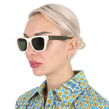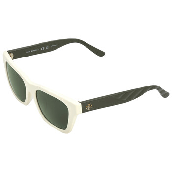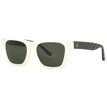 Tory Burch Sunglasses. Series number: TY7181U. Color code: 190671. Shape: Rectangular. Lens Width: 52 mm. Lens Bridge: 18 mm. Arm Length: 140 mm. 100% UV protection. Frame Material: Plastic. Frame Color: Solid Ivory. Lenses Type: Solid Dark Green. Rim Style: Full-Rim. UPC/EAN code: 725125390972. Tory Burch Solid Dark Green Rectangular Ladies Sunglasses TY7181U 190671 52.
