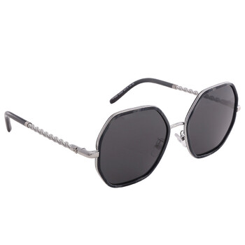 Tory Burch Sunglasses. Series number: TY6092. Color code: 333087. Shape: Irregular. Lens Width: 55 mm. Lens Bridge: 19 mm. Arm Length: 140 mm. 100% UV protection. Frame Material: Metal. Frame Color: Blue Horn. Lenses Type: Solid Gray. Rim Style: Full-Rim. UPC/EAN code: 725125389310. Tory Burch Solid Gray Irregular Ladies Sunglasses TY6092 333087 55.