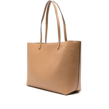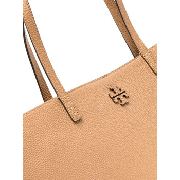 Tory Burch Ladies Tote. SKU: 152221-227. Color: Tiramisu. Size: H: 11.4" x L: 14" x D: 5.5". Tory Burch Tiramisu McGraw Pebbled Leather Tote Bag. The McGraw Tote, made from pebbled leather, boasts a suede-like microfiber lining, a leather tab with a dog-clip closure, top handles with a 10" drop, and an interior hanging zipper pocket. Outer: Calf Leather 100%.