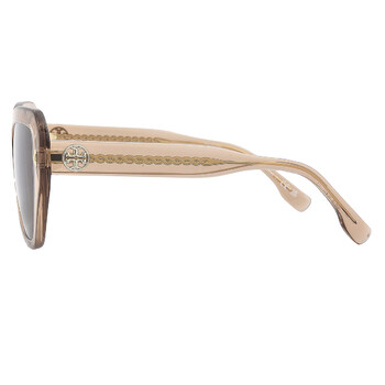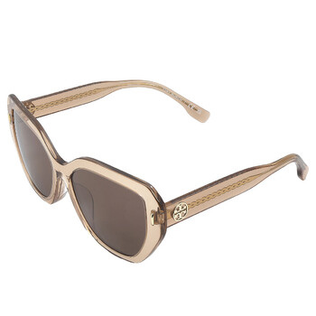 Tory Burch Sunglasses. Series number: TY7194F. Color code: 19541A. Shape: Cat Eye. Lens Width: 57 mm. Lens Bridge: 17 mm. Arm Length: 145 mm. 100% UV protection. Frame Material: Acetate. Frame Color: Transparent Brown. Lenses Type: Violet. Rim Style: Full-Rim. UPC/EAN code: 725125449625. Tory Burch Violet Cat Eye Ladies Sunglasses TY7194F 19541A 57.