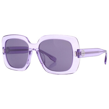 Tory Burch Sunglasses. Series number: TY7193U. Color code: 18851A. Shape: Square. Lens Width: 56 mm. Lens Bridge: 19 mm. Arm Length: 140 mm. 100% UV protection. Frame Material: Acetate. Frame Color: Transparent Violet. Lenses Type: Violet. Rim Style: Full-Rim. UPC/EAN code: 725125440066. Tory Burch Violet Square Ladies Sunglasses TY7193U 18851A 56.