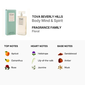 Discover the serene elegance of Tova Beverly Hills Body Mind & Spirit Eau de Parfum Spray for Ladies. Launched in 1992, this timeless fragrance captures the essence of inner harmony and graceful femininity. Created by the renowned design house of Tova Beverly Hills in the United States, this 3.4 oz floral EDP spray blends soft sophistication with lasting charm.