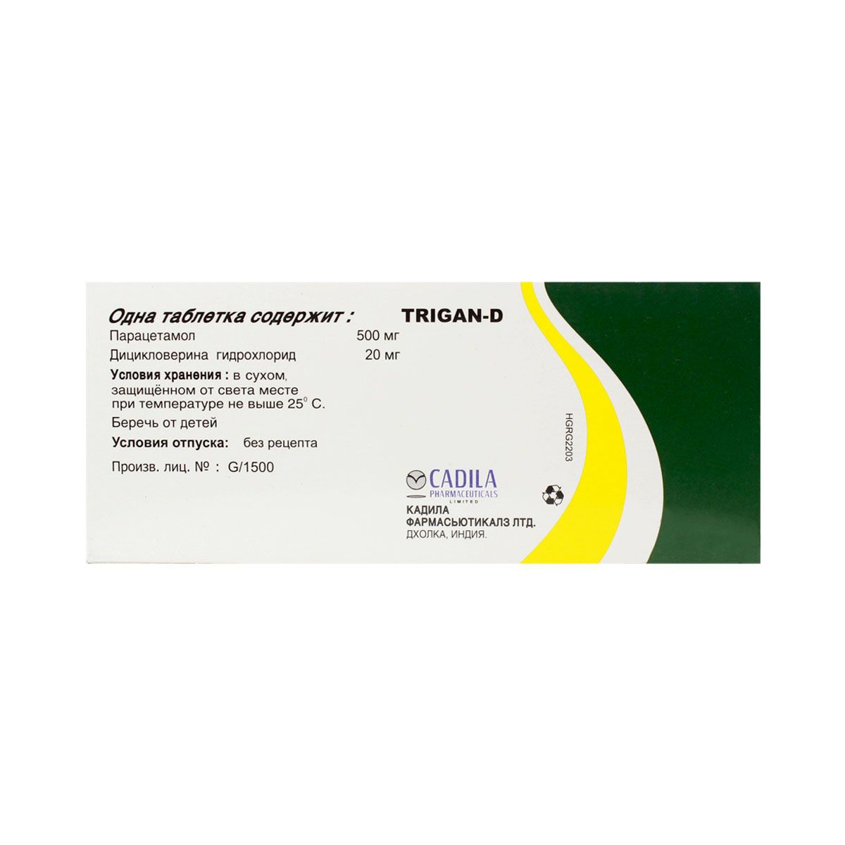 ტრიგან-დ-ს ამ ორი კომპონენტის კომბინიერბული მოქმედება უზრუნველყოფს შინაგანი ორგანოების სპაზმური გლუვი კუნთების მოდუნებას და ტკივილის შეგრძნობის შესუსტებას.