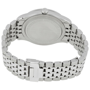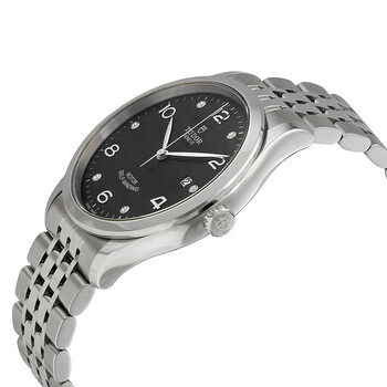 Stainless steel case with a stainless steel bracelet. Fixed stainless steel bezel. Black dial with silver-tone leaf-style hands and alternating Arabic numeral and diamond hour markers. Minute markers around the outer rim. Dial Type: Analog. Date display at the 3 o'clock position. Tudor calibre 2824 automatic movement, based upon ETA 2824, containing 25 Jewels, bitting at 28800 vph, and has a power reserve of approximately 38 hours. Scratch resistant sapphire crystal. Screw down crown. Solid case back. Round case shape. Case size: 41 mm. Band width: 22 mm. Fold over clasp. Water resistant at 100 meters / 330 feet. Functions: date, hour, minute, second. 1926 Series. Dress watch style. Watch label: Swiss Made. Tudor 1926 Automatic 41 mm Diamond Black Dial Men's Watch M91650-0004.