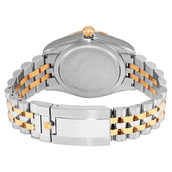 Silver-tone stainless steel case with a stainless steel and 18kt yellow gold bracelet. Fixed 18kt yellow gold bezel. Silver dial with yellow gold-tone hands and index hour markers. Minute markers around the outer rim. Dial Type: Analog. Luminescent hands and markers. Tudor Calibre MT5400 Automatic movement, containing 27 Jewels, bitting at 28800 vph, and has a power reserve of approximately 70 hours. Scratch resistant sapphire crystal. Solid case back. Round case shape, case size: 36 mm. Folding clasp. Water resistant at 100 meters / 330 feet. Functions: hour, minute, second, chronometer. Black Bay 36 Series. Luxury watch style. Watch label: Swiss Made. Tudor Black Bay 36 Automatic Chronometer Silver Dial Unisex Watch M79643-0002.