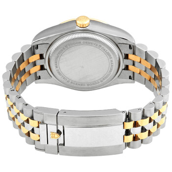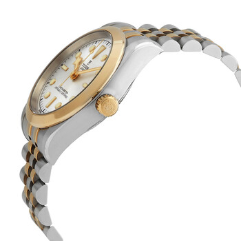 Yellow gold case with a stainless steel & yellow gold bracelet. Fixed yellow gold bezel. Silver dial with index hour markers. Dial Type: Analog. Tudor Calibre MT5602 Automatic movement, based upon Tudor MT5612, containing 26 Jewels, bitting at 28800 vph, and has a power reserve of approximately 70 hours. Scratch resistant sapphire crystal. Solid case back. Round case shape, case size: 39 mm. Deployment clasp. Water resistant at 100 meters / 330 feet. Functions: hour, minute, second, chronometer. Black Bay Series. Luxury watch style. Watch label: Swiss Made. Tudor Black Bay 39 S G Automatic Chronometer Silver Dial Men's Watch M79663-0002.