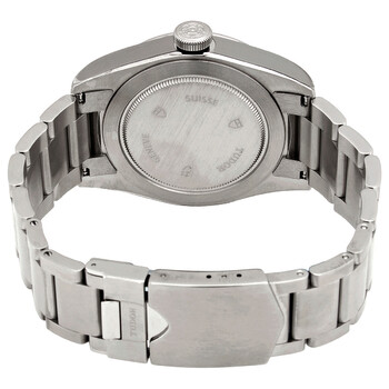 Stainless steel case with a stainless steel bracelet. Fixed stainless steel bezel. Silver dial with luminous hands and dot hour markers. Minute markers around the outer rim. Luminescent hands and markers. Tudor calibre T600 automatic movement with a 38-hour power reserve. Scratch resistant sapphire crystal. Screw down crown. Solid case back. Round case shape. Case size: 41 mm. Fold over clasp with a safety release. Water resistant at 150 meters / 500 feet. Functions: hour, minute, second. Black Bay Series. Sport watch style. Watch label: Swiss Made. Tudor Black Bay 41 Automatic Silver Dial Men's Watch M79540-0011.