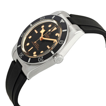 Silver-tone stainless steel case with a black rubber strap. Uni-directional rotating silver-tone stainless steel bezel with an aluminium black ring. Black dial with gold-tone hands and index hour markers. Minute markers around the outer rim. Dial Type: Analog. Luminescent hands and markers. Tudor Calibre MT5400 Automatic movement, containing 27 Jewels, bitting at 28800 vph, and has a power reserve of approximately 70 hours. Scratch resistant sapphire crystal. Screw down crown. Round case shape, case size: 37 mm. T-fit clasp. Water resistant at 200 meters / 660 feet. Functions: hour, minute, second, chronometer. Black Bay 54 Series. Luxury watch style. Watch label: Swiss Made. Tudor Black Bay 54 Automatic Chronometer Black Dial Men's Watch M79000N-0002.