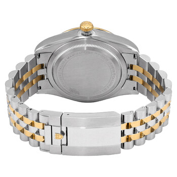 Silver-tone stainless steel case with a stainless steel and yellow gold bracelet. Fixed yellow gold bezel. Black dial with yellow gold-tone hands and index hour markers. Minute markers around the outer rim. Dial Type: Analog. Luminescent hands and markers. Tudor Calibre MT5601 Automatic movement, based upon Tudor MT5612, containing 26 Jewels, bitting at 28800 vph, and has a power reserve of approximately 70 hours. Scratch resistant sapphire crystal. Solid case back. Round case shape, case size: 41 mm. Folding clasp. Water resistant at 100 meters / 330 feet. Functions: hour, minute, second, chronometer. Black Bay Series. Luxury watch style. Watch label: Swiss Made. Tudor Black Bay Automatic Chronometer Black Dial Men's Watch M79683-0001.