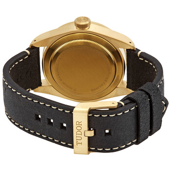 Bronze case with a black (nubuck) leather strap. Uni-directional rotating bronze bezel with a matt slate grey aluminium ring. Slate grey dial with luminous bronze-coloured snowflake-shape hands and dot hour markers. Arabis numerals appear at the 3, 6 and 9 o'clock positions. Minute markers around the outer rim. Dial Type: Analog. Luminescent hands and markers. Tudor calibre MT5601 automatic movement, based upon Tudor MT5612, containing 26 Jewels, bitting at 28800 vph, and has a power reserve of approximately 70 hours. Scratch resistant sapphire crystal. Screw down crown. Solid case back. Round case shape. Case size: 43 mm. Band width: 22 mm. Tang clasp. Water resistant at 200 meters / 660 feet. Functions: hour, minute, second. Black Bay Bronze Series. Luxury watch style. Watch label: Swiss Made. Tudor Black Bay Bronze Automatic Men's Watch M79250BA-0001.